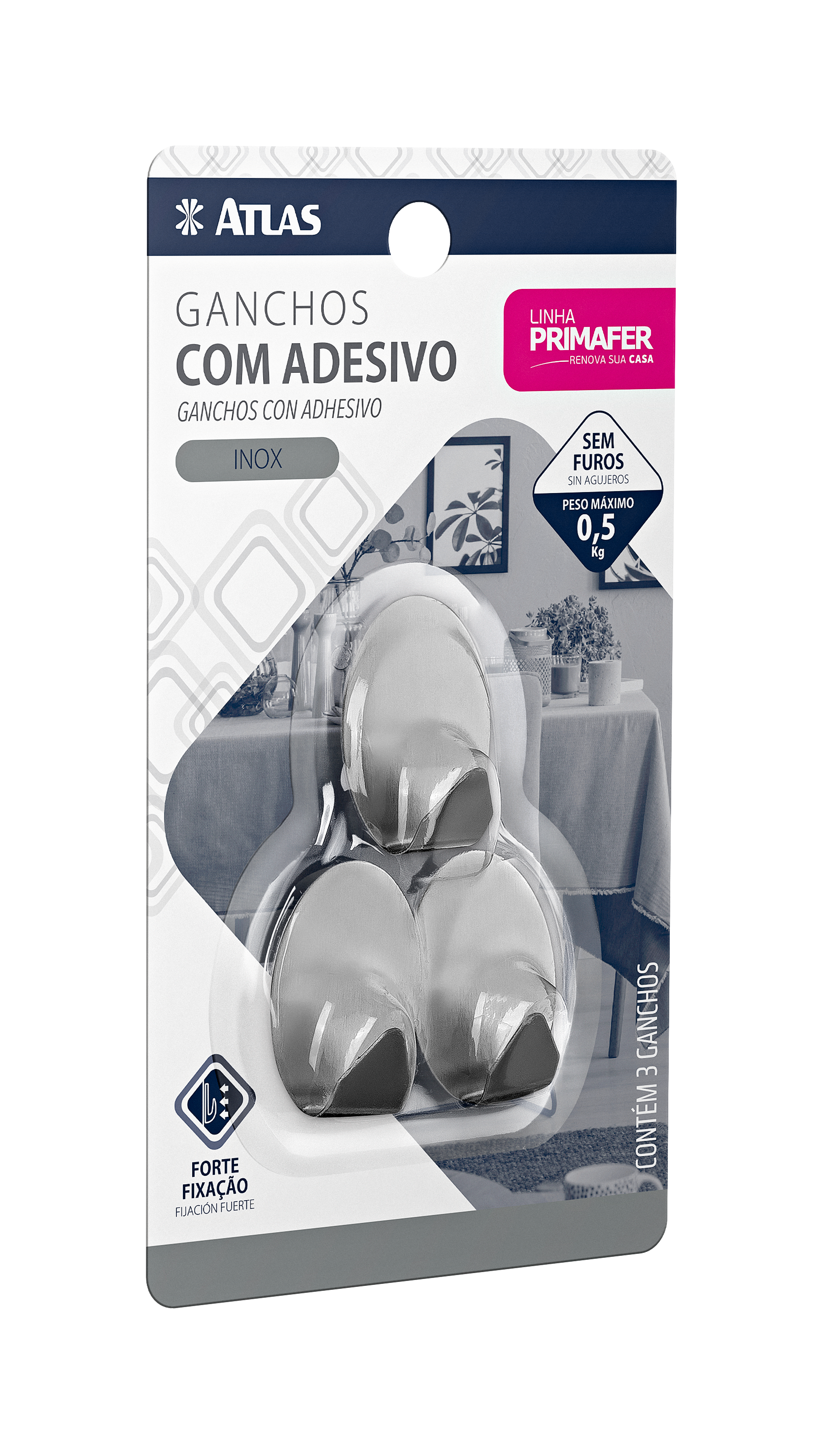 GANCHO ADESIVO 3PC 0,5KG INOX ATLAS